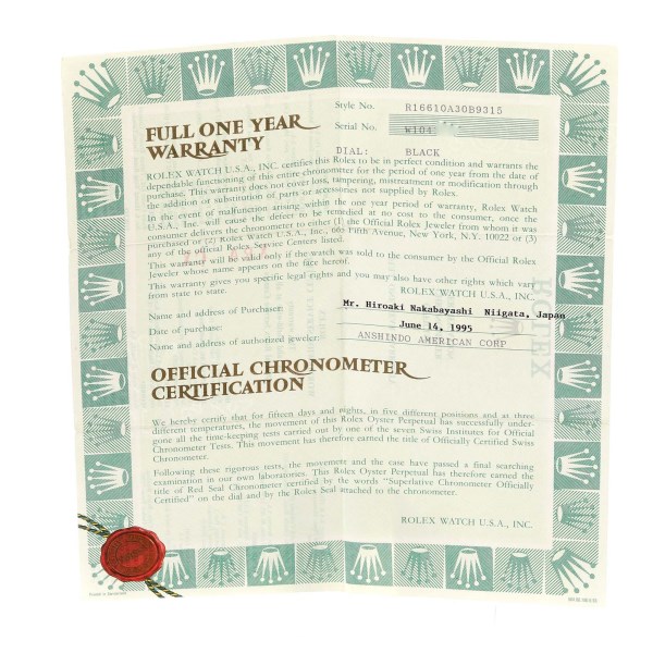 | Box & Papers: | Rolex box and papers. |