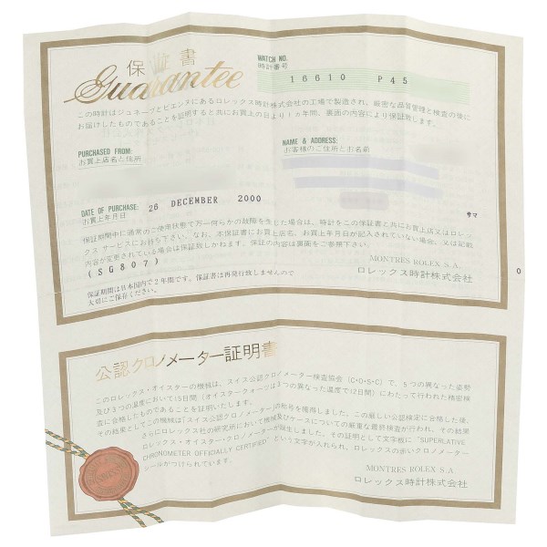 | Box & Papers: | Rolex box and papers. |