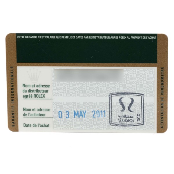 | Box & Papers: | Rolex box and card. |