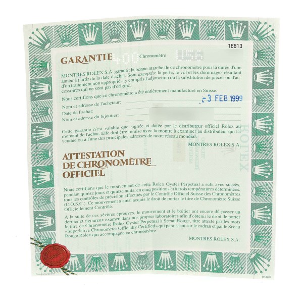 | Movement: | Officially certified chronometer automatic self-winding movement. |