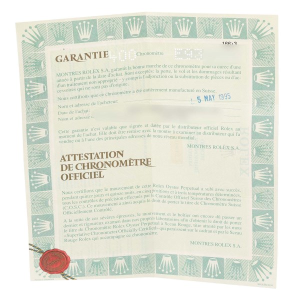 | Box & Papers: | Rolex box and papers. |