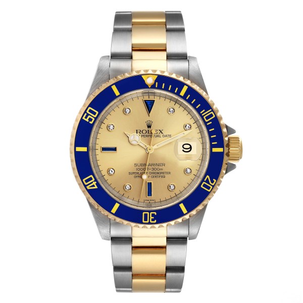 | Model Name: | Rolex Submariner Steel Yellow Gold Diamond Sapphire Serti Dial Mens Watch 16613 Box Service Card |