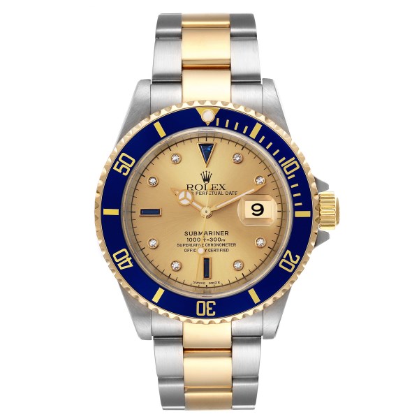 | Model Name: | Rolex Submariner Steel Yellow Gold Diamond Sapphire Serti Dial Mens Watch 16613 |