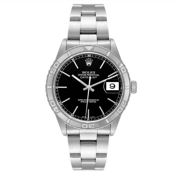 | Model Name: | Rolex Turnograph Datejust Steel White Gold Black Dial Mens Watch 16264 Box Papers |