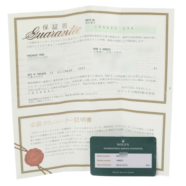 | Box & Papers: | Rolex papers and service card. |