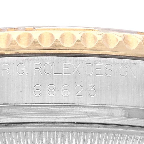 | Case: | Stainless steel and 18K yellow gold case 35.0 mm in diameter. Rolex logo on the crown. |