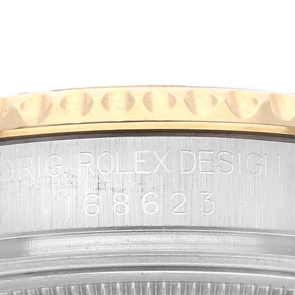 | Case: | Stainless steel and 18K yellow gold case 35.0 mm in diameter. Rolex logo on the crown. |