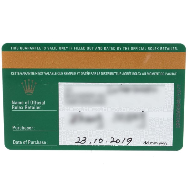 | Box & Papers: | Rolex box and card. |